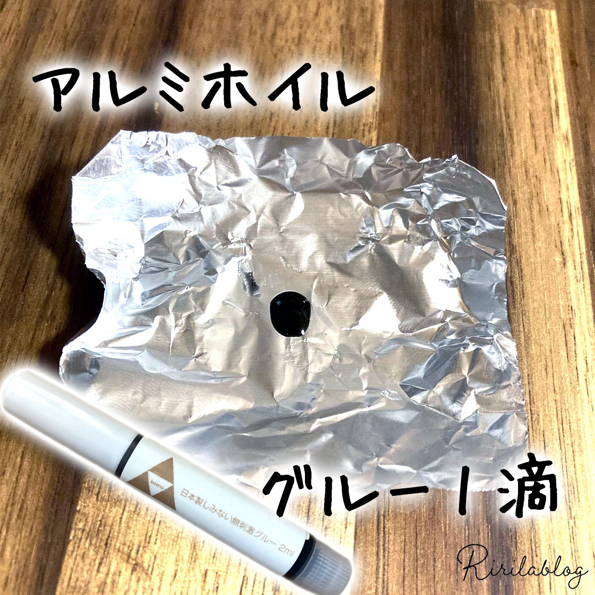 ②グルーをアルミホイルの上に1滴