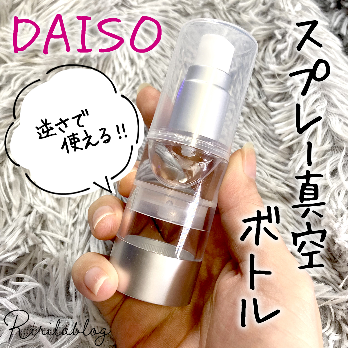 ダイソーの真空スプレーボトルがオススメ!逆さでも使えるので背中にかけやすい◎